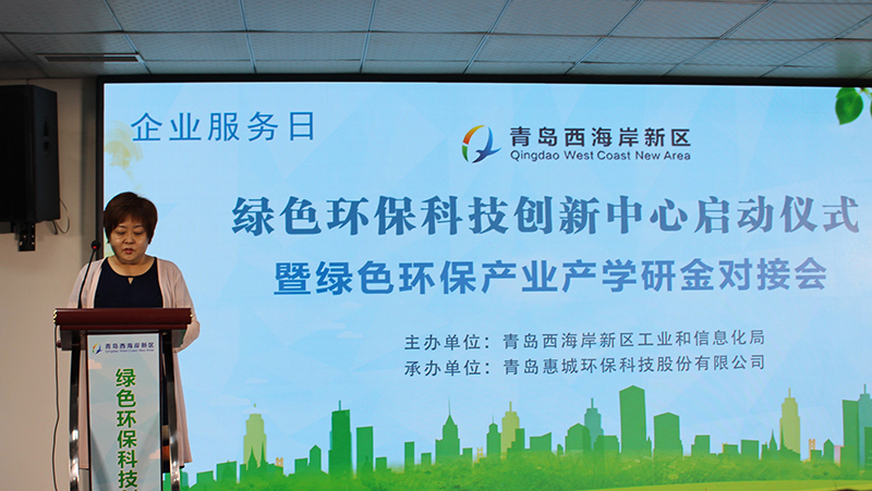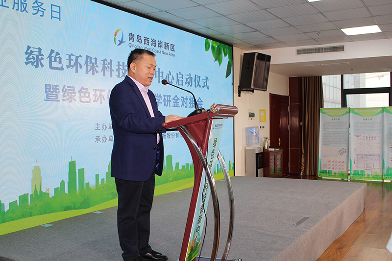 青島西海岸新區(qū)工信局副局長張青宣讀《關(guān)于青島西海岸新區(qū)綠色環(huán)保科技創(chuàng)新中心的批復(fù)》